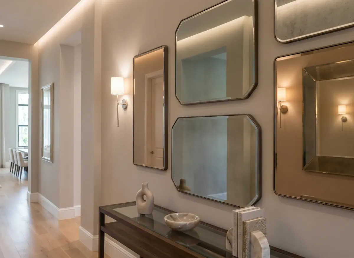 Positioning mirrors for hallway entrance corners helps open up tighter areas and improve visibility between connecting spaces. These mirrors soften transitions and reduce the boxed-in feel often found in narrow layouts. They also add depth without requiring additional décor or furniture.
