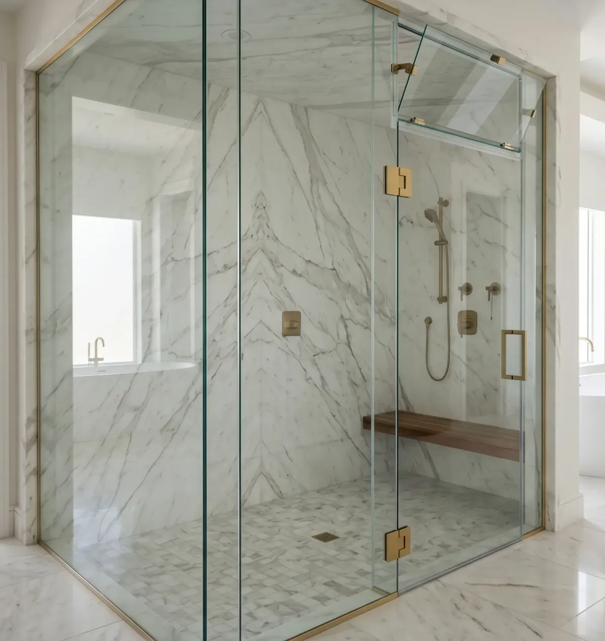 A proper shower door for a steam shower requires three things standard doors lack: full perimeter sealing including the enclosure ceiling, heavy tempered glass for thermal stability, and steam-rated corrosion-resistant hardware. At Luxurious Glass, we engineer every steam shower glass enclosure in Naples, Florida, with all three, no compromises, no shortcuts.